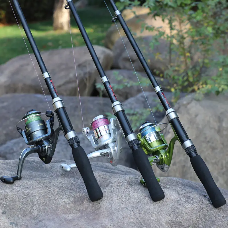 Lanset? de pescuit 1M cu mulinet?, lanset? de pescuit la ghea?? în 2 p?r?i, momeli, cârlige, echipam